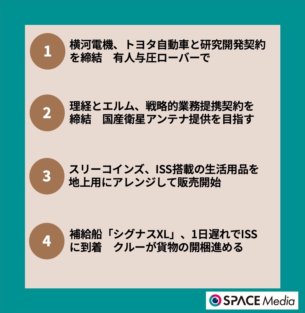 9/25宇宙ニュース・横河電機、トヨタ自動車と研究開発契約を締結 ほか3件
