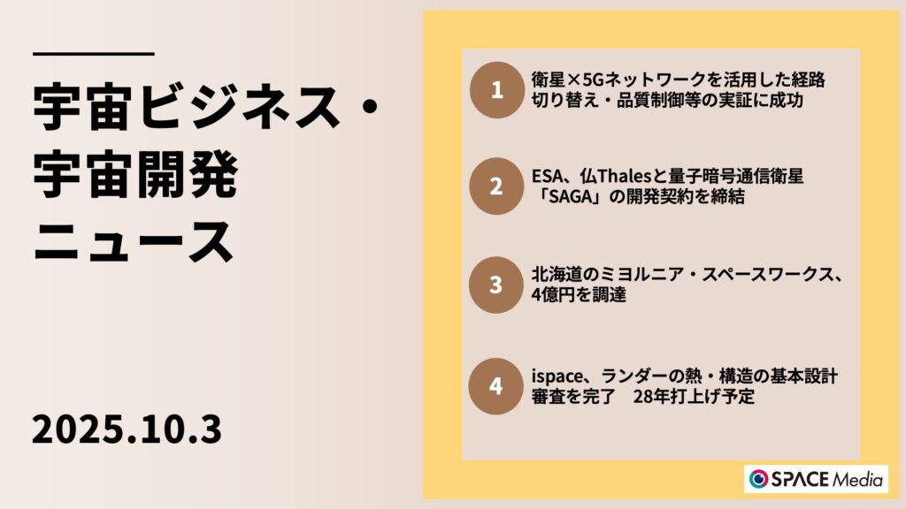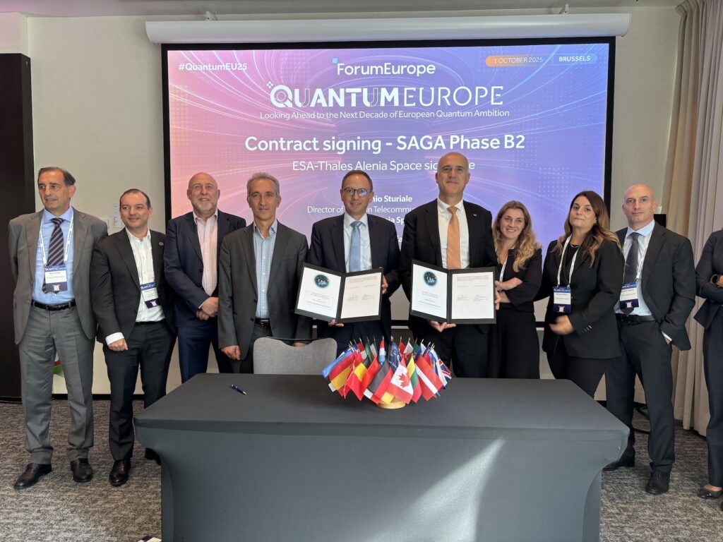 2025年10月1日、欧州宇宙機関(ESA)は、量子暗号技術を用いた安全な衛星通信システムを実現する「SAGA(Security And cryptoGrAphic)」ミッションの予備設計について、Thales Alenia Space(フランス・カンヌ、CEO:Hervé Derrey)と5,000万ユーロ(約86億円)の契約を締結したと発表しました(ESAによる発表)。