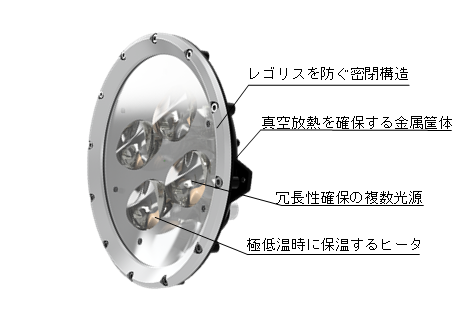 月では約14日ごとに昼夜が入れ替わるため、長期間続く夜間の探査活動には照明が必須となります。また、昼夜の寒暖差が激しいことや月面の細かい砂「レゴリス」が機器類に影響を与えることも考慮する必要があり、これらを重点開発取り組みとするということです。