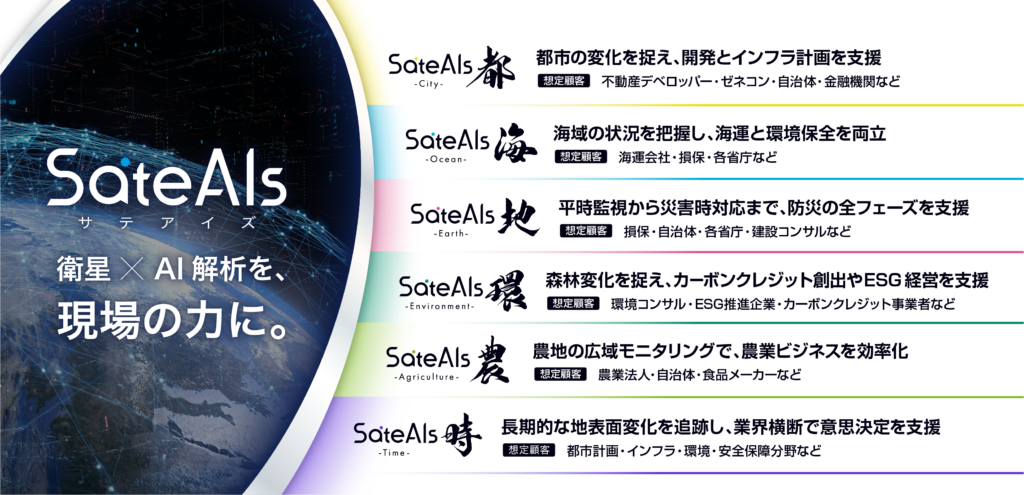 「SateAIs」で展開されているサービス(SateAIs 環 -Environment-は近日リリース予定)