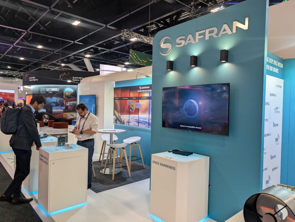 フランスを拠点に、宇宙航空・防衛・通信といった幅広い領域を手がける大手・SAFRANのブース。宇宙関連機器の部品などが展示されていました