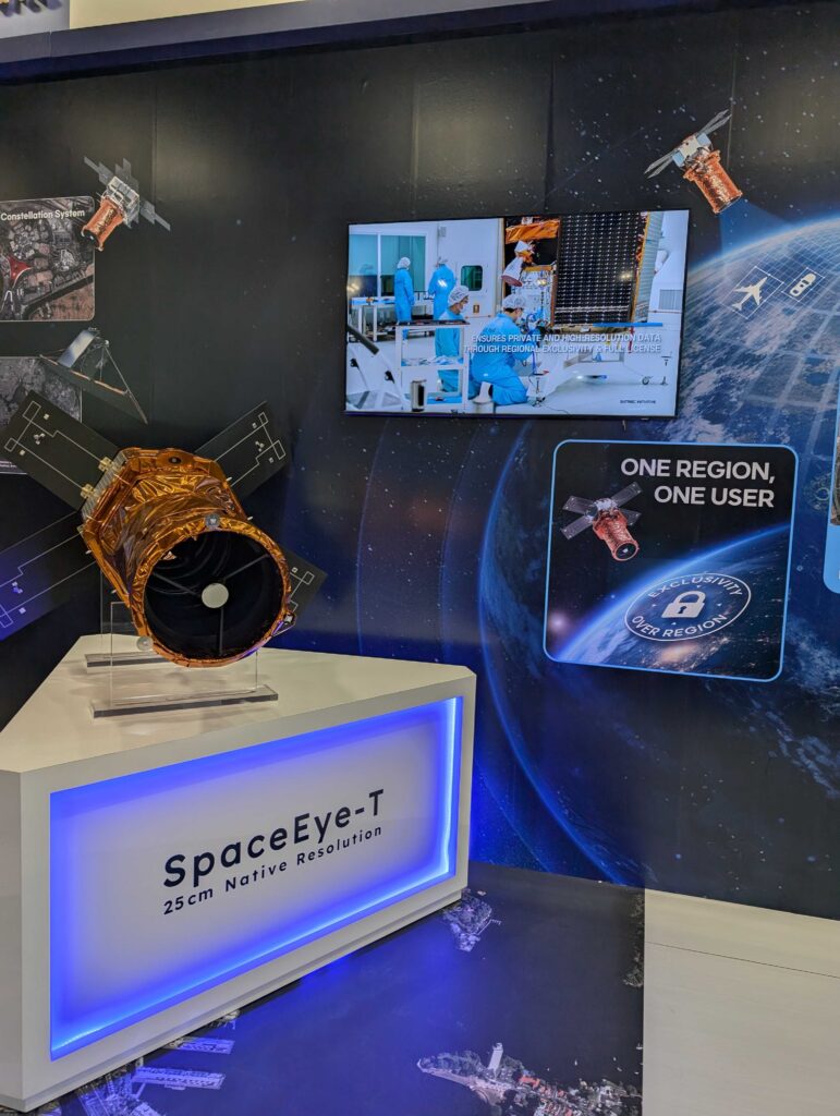 こちらは韓国の衛星メーカー・Satrec Initiativeのブース。25センチメートルの超高解像度衛星「SpaceEye-T」のモックアップを展示していました