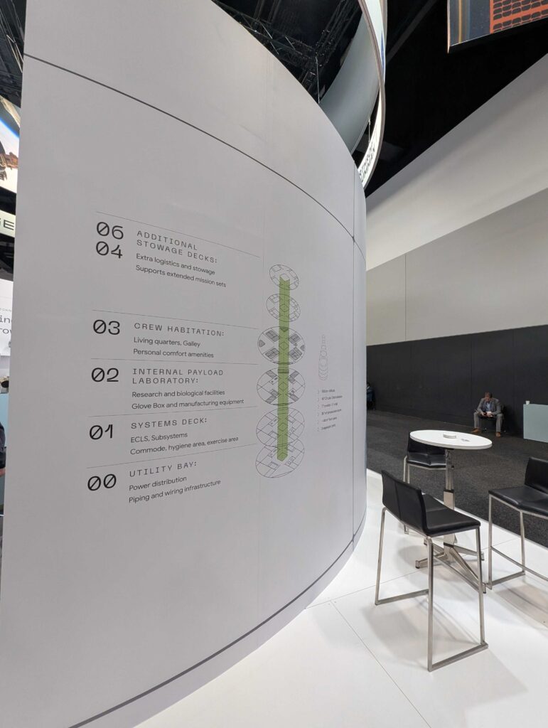 編集部が特に注目したのは、民間宇宙ステーション「Starlab」を開発するStarlab Spaceのブース。同社が開発を進めている宇宙ステーションの構造が具体的にイメージできる展示となっていました。