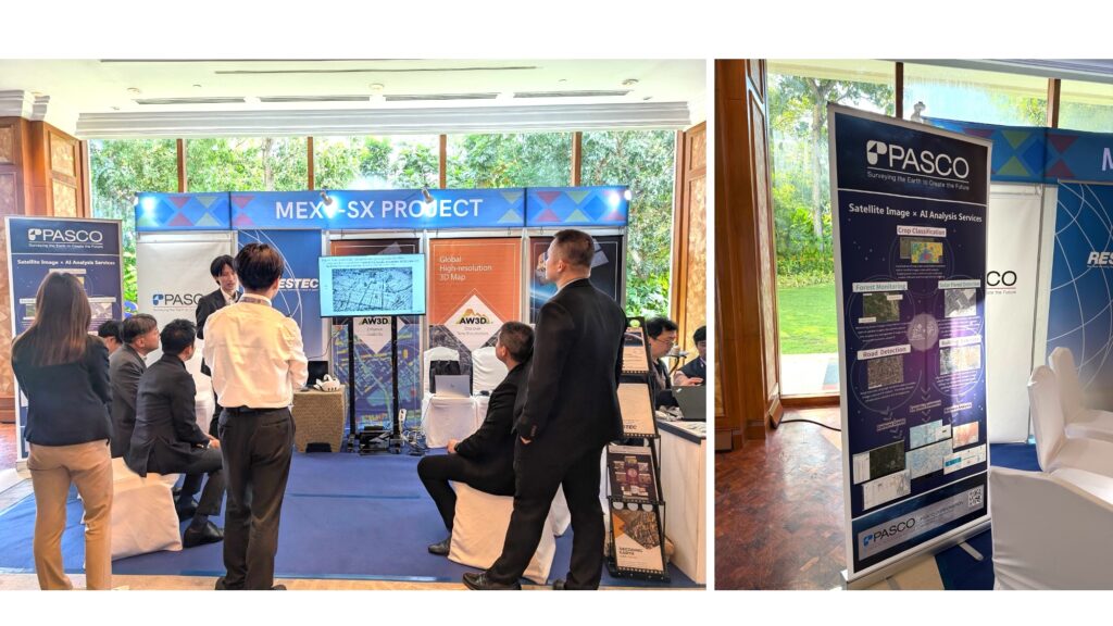MEXT-SX Project:株式会社パスコ、株式会社NTTデータ、株式会社Marble Visions、一般財団法人リモート・センシング技術センターによる共同出展。防災・農業等の分野におけるデジタルトランスフォーメーションを推進する、衛星データとAI技術を活用したソリューションを紹介