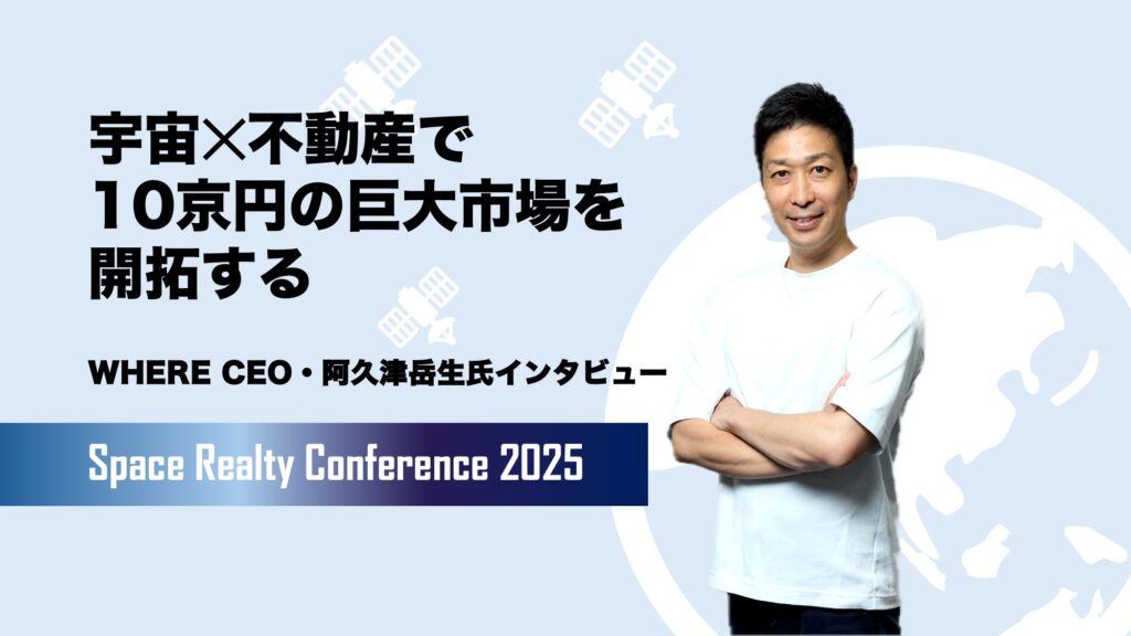 そんなWHERE代表の阿久津岳生氏は、不動産・建築領域で8社を起業・経営しながら3つの大学院に通い、ビジネスと学術両面から新しいビジネス・社会価値の創出に挑戦するという、宇宙ビジネス業界でも異色の経歴をもつ人物です。カンファレンス立ち上げの背景や、宇宙ビジネス・不動産ビジネスに対する思いを聞きました。